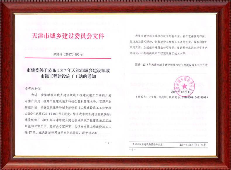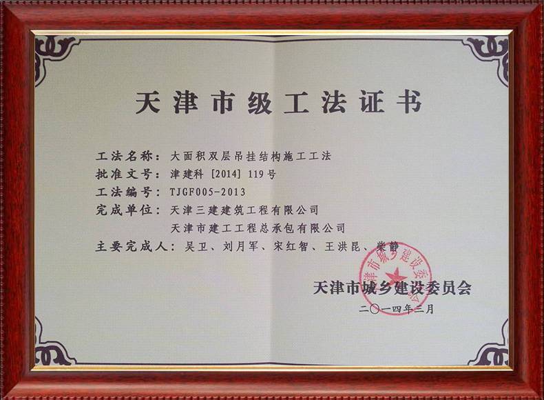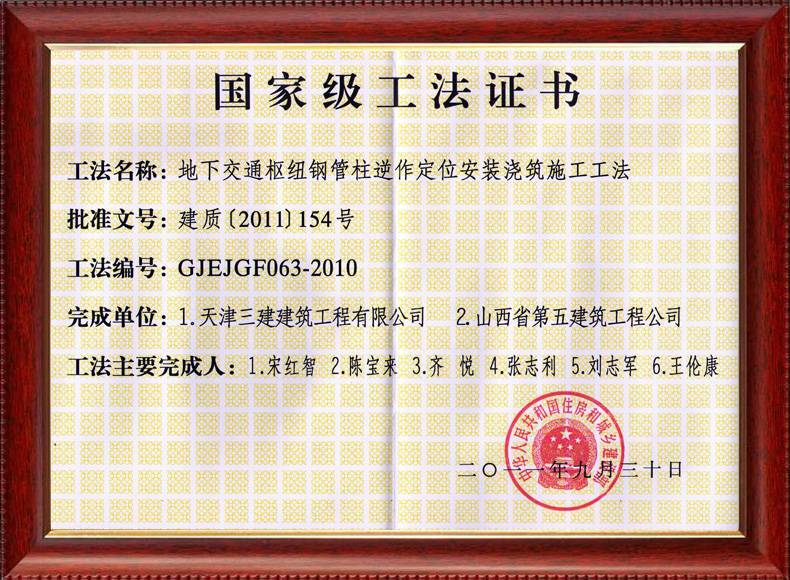 三建公司不斷發(fā)揚科技創(chuàng)新精神,注重施工經(jīng)驗的提練和總結(jié),編寫了27項工法,其中國家級工法3項,市級工法24項。為促進城市建設(shè)快速發(fā)展,不斷提升施工工藝水平做出了重要貢獻。