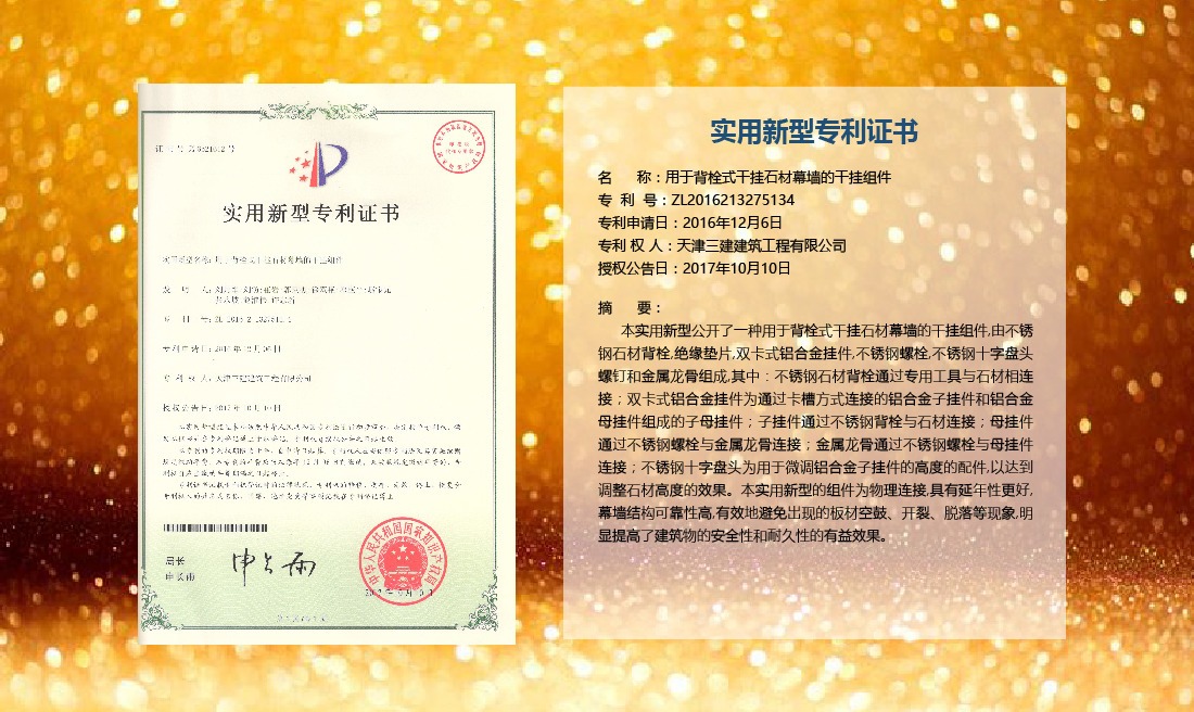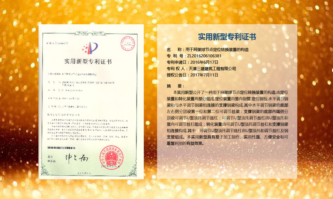 三建公司在總結施工經驗的基礎上,不斷發明創新,共獲得國家知識產權局授權專利71項,其中,國家發明專利12項,國家實用新型專利59項。囊括建筑、市政、巖土、道橋等多領域,凝聚了公司廣大工作人員的寶貴智慧和工程建筑者們的辛勤汗水。