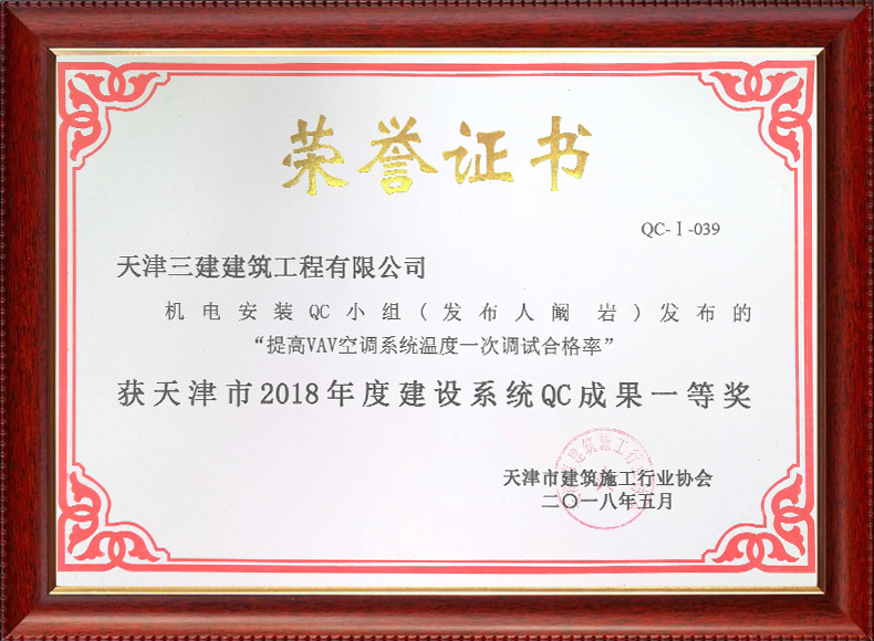 2018安裝分公司QC成果一等獎