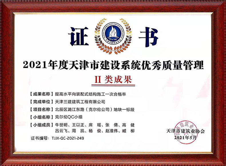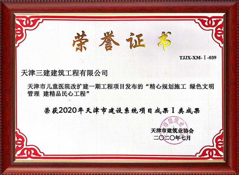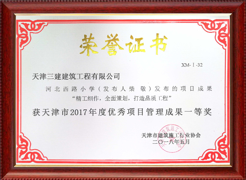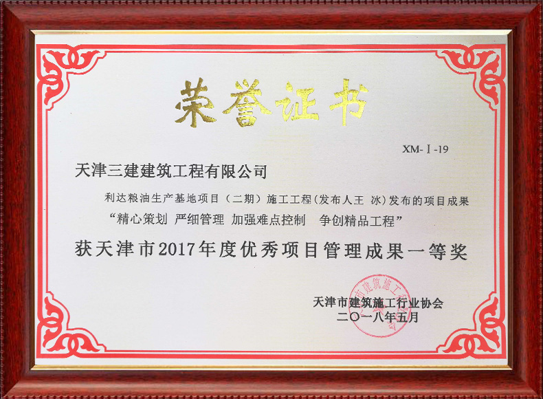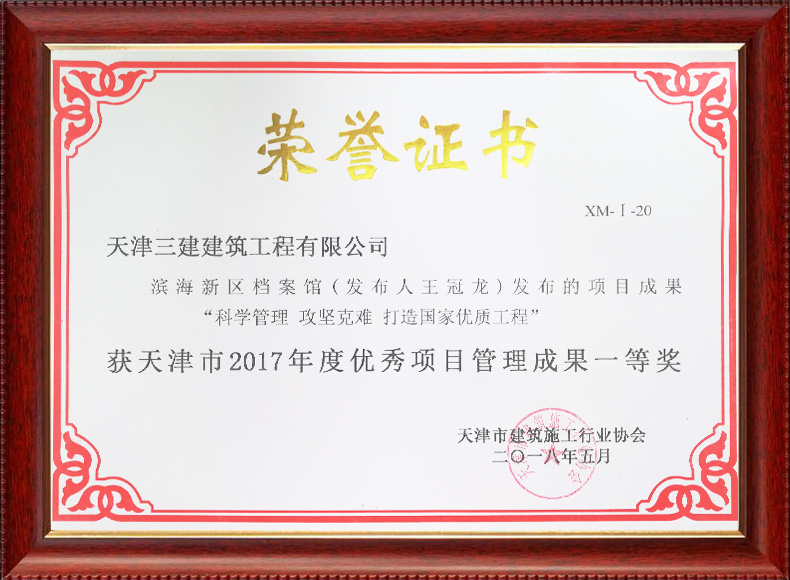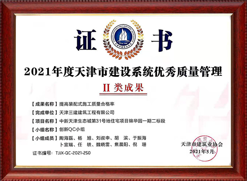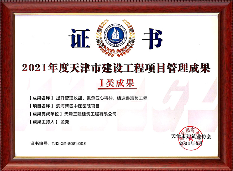 三建公司共獲得科技成果等各項獎項74項,其中中施企協類6項,中國建筑協會獎項6項,政府類2項,其他類17項。獲得天津市科學技術委員會等級科技成果43項。