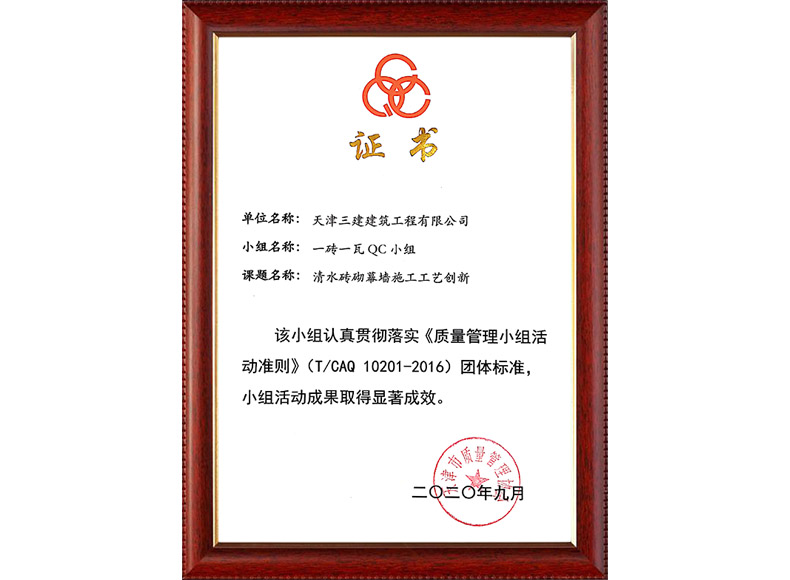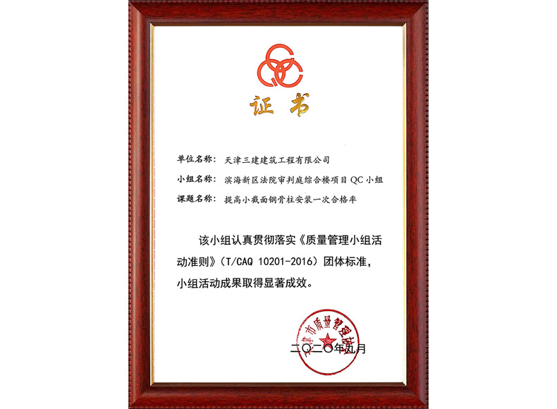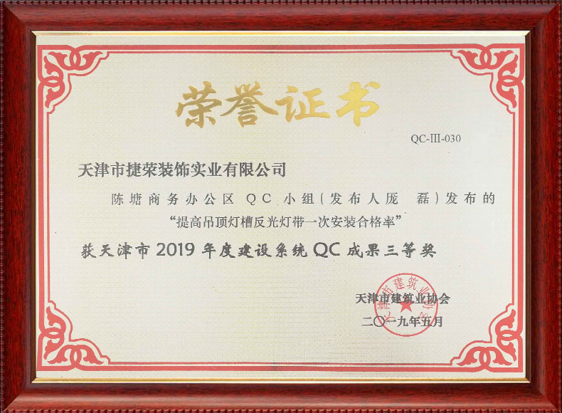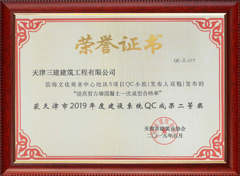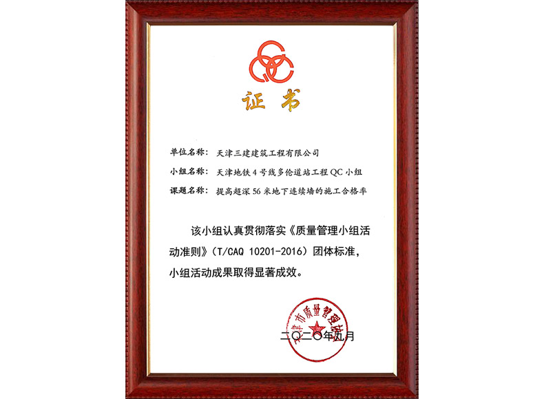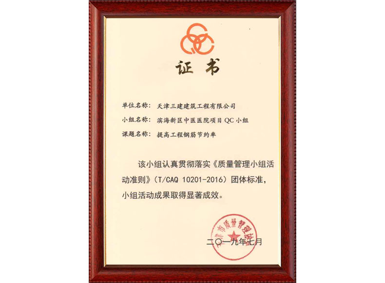 2019天津市質量協會優秀QC小組(濱五)