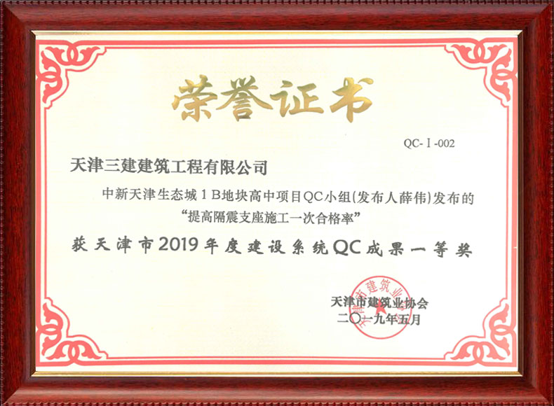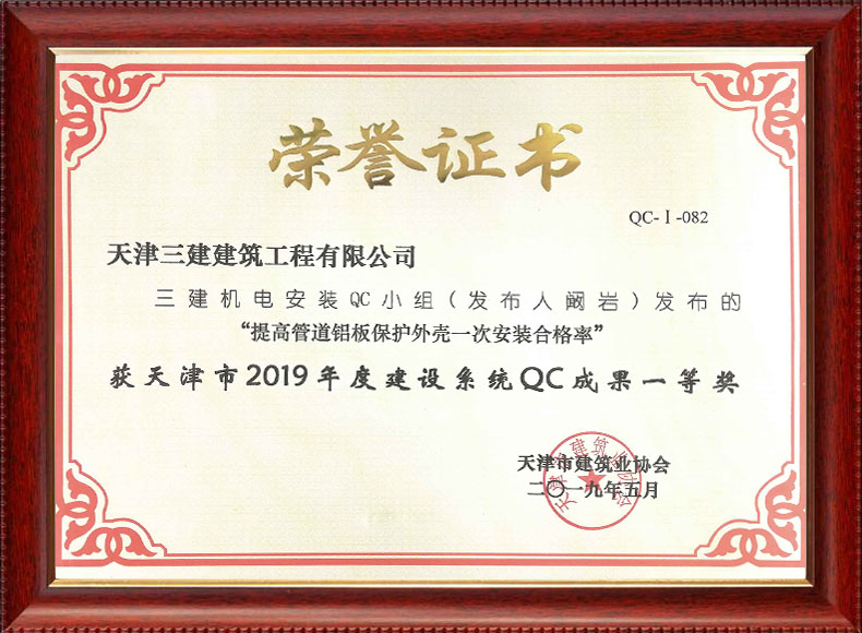 2019機電安裝QC小組一等獎