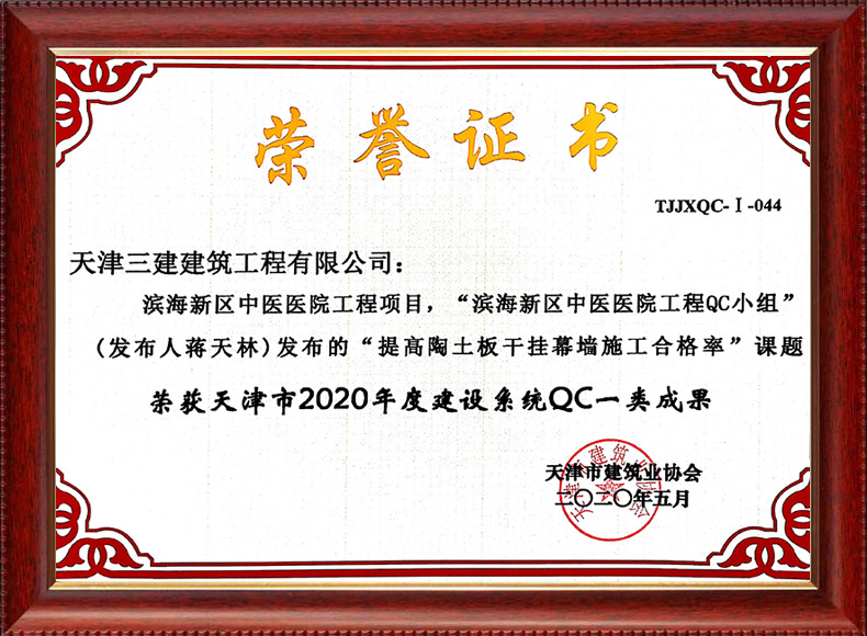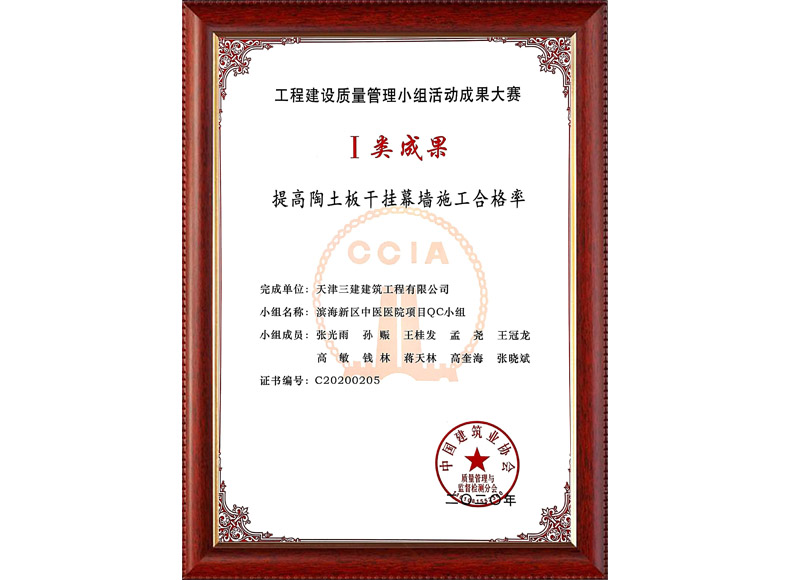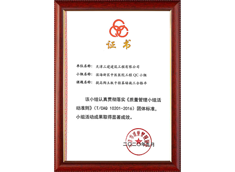 2020中建協QC成果I類成果(濱海新區中醫醫院項目)