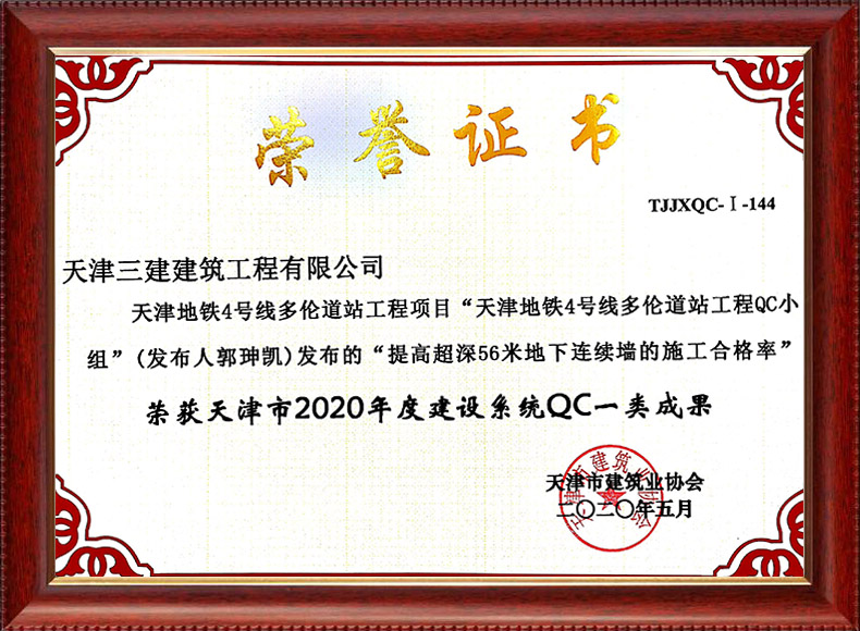 2020天津建協一等獎(天津地鐵4號線多倫道站工程項目)