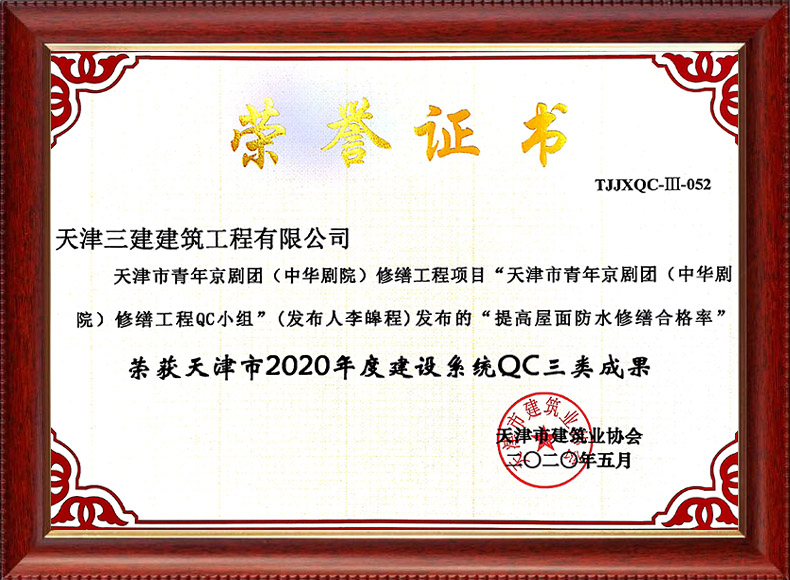 2020天津建協三等獎(天津市青年京劇院(中華劇院)修繕工程項目)