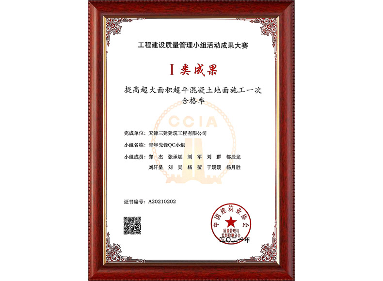 2021中建協I類 提高超大面積超平混凝土地面施工一次合格率