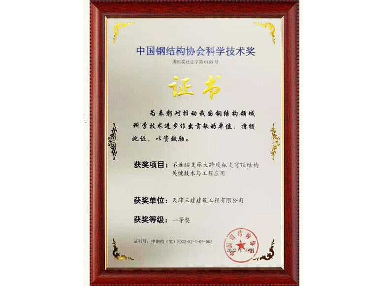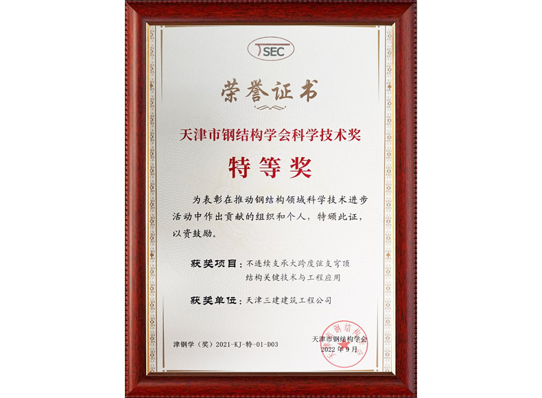2022 天津市鋼結構學會科學技術獎