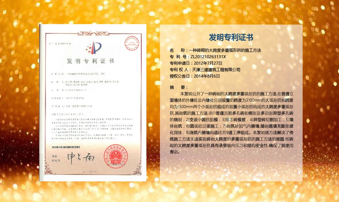 一種磚砌的大跨度多重弧形拱的施工方法(發明跨年)