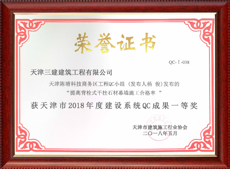 2021中建協I類 提高超厚石材幕墻施工一次合格率