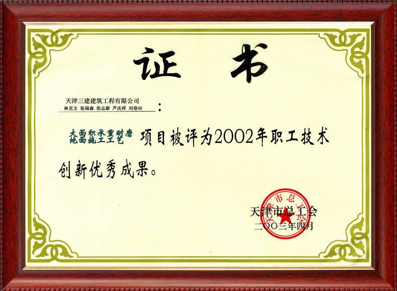 2003年總工會創新大面積承重耐磨地面施工工藝
